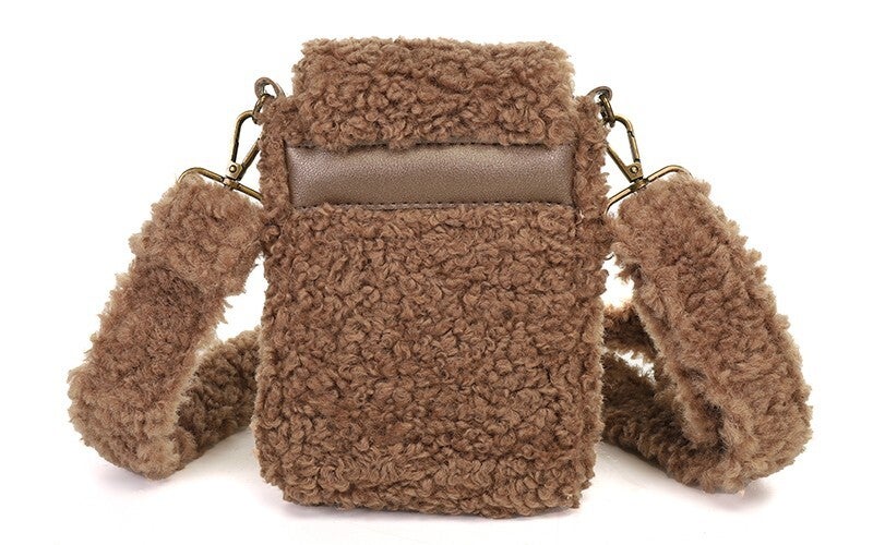 Dit compacte telefoontasje gemaakt van teddy materiaal heeft een stoere winterse uitstraling en is ideaal voor het veilig en stijlvol opbergen van je kleine essentials. Het design wordt gekenmerkt door een chique flap met een handige draaisluiting, die niet alleen zorgt voor een verfijnde look, maar ook je spullen goed beschermt. Het tasje heeft een verstelbare brede teddy-band.