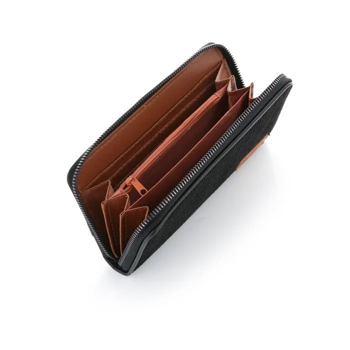 Moderne en ruime portemonnee. Voorzien van een ritssluiting rondom, meerdere vakken voor pasjes en briefgeld, en een middenvak met rits voor muntgeld. Ideaal voor georganiseerd dagelijks gebruik.