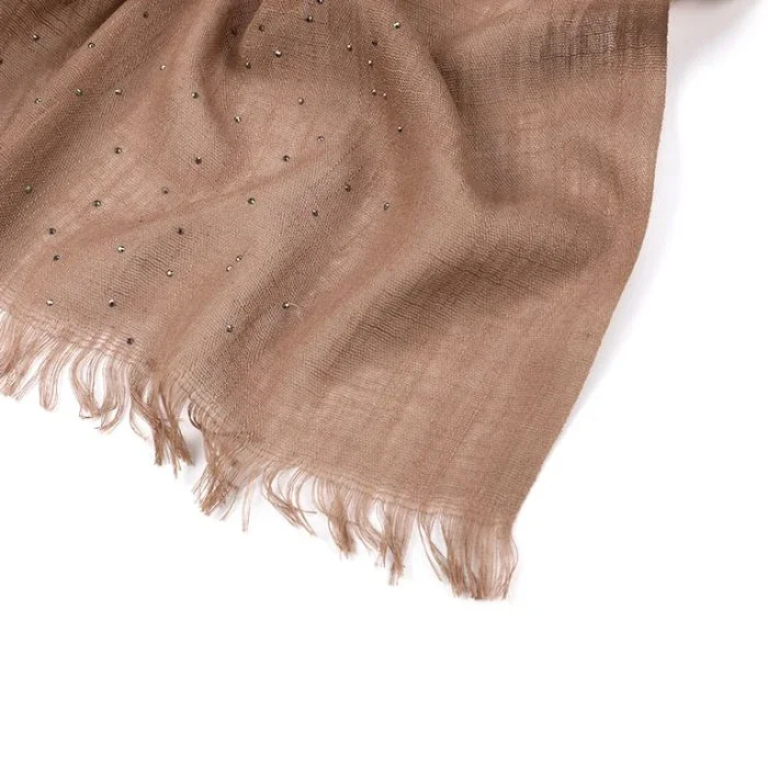 Voeg een vleugje verfijning toe aan je outfit met deze stijlvolle coffee sjaal. Deze luchtige sjaal is gemaakt van een zachte, ademende stof en afgewerkt met subtiele glinsterende stipjes voor een elegante uitstraling. Perfect voor zowel casual als chique gelegenheden.