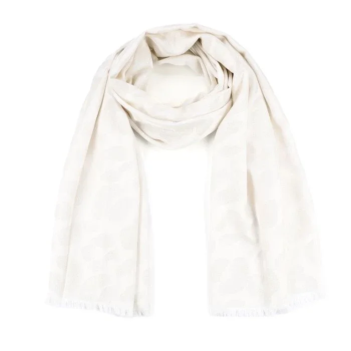 De sjaal is gemaakt van een soepele, lichtgewicht stof die comfortabel draagt en mooi valt. De subtiele print geeft je outfit net dat beetje extra, terwijl de neutrale tint ervoor zorgt dat je hem moeiteloos combineert met elke look.