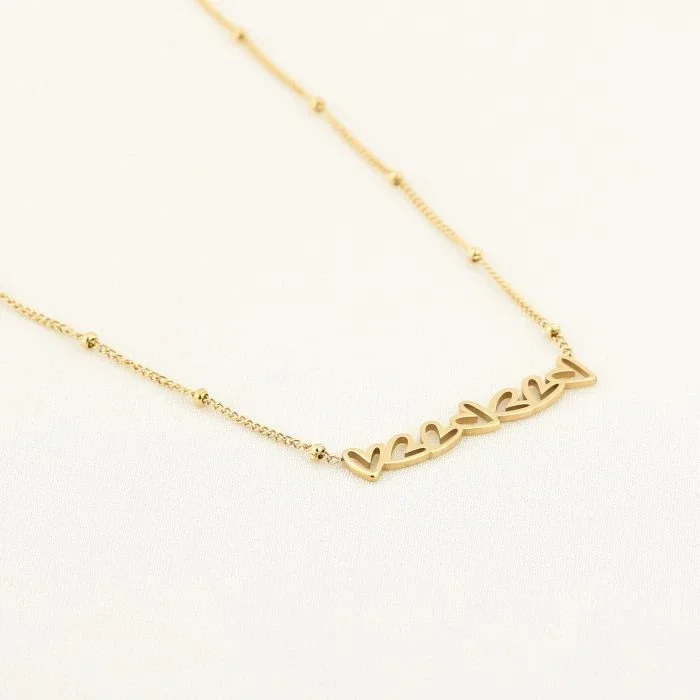 Deze verfijnde ketting met subtiele hartjes is een echte must-have voor iedere sieradenliefhebber. Het minimalistische design in goud- of zilverkleur geeft de ketting een elegante en persoonlijke uitstraling.